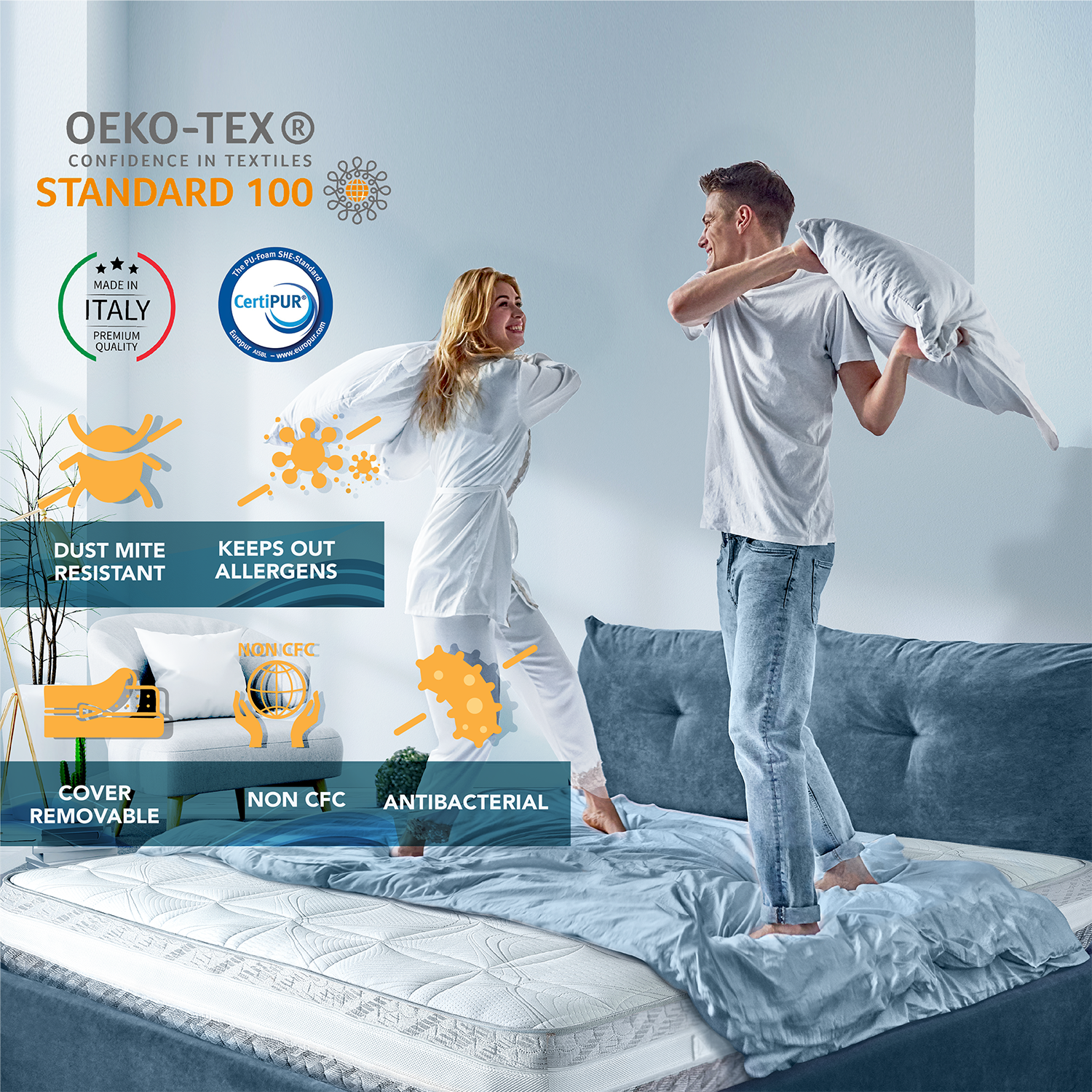 ✔️QUALITÀ ITALIANA CERTIFICATA: Tutti i materassi Tanhk sono 100% Made in Italy e realizzati con materiali pregiati e sicuri certificati, adatti a tutta la famiglia. Prodotti nel rispetto di normative rigorose e utilizzando le tecnologie più avanzate, produciamo materassi che resistono alla prova del tempo, offrendovi un sostegno e un comfort ottimali per tutta la notte. Certificato OEKO-TEX Standard 100 e CertiPUR.